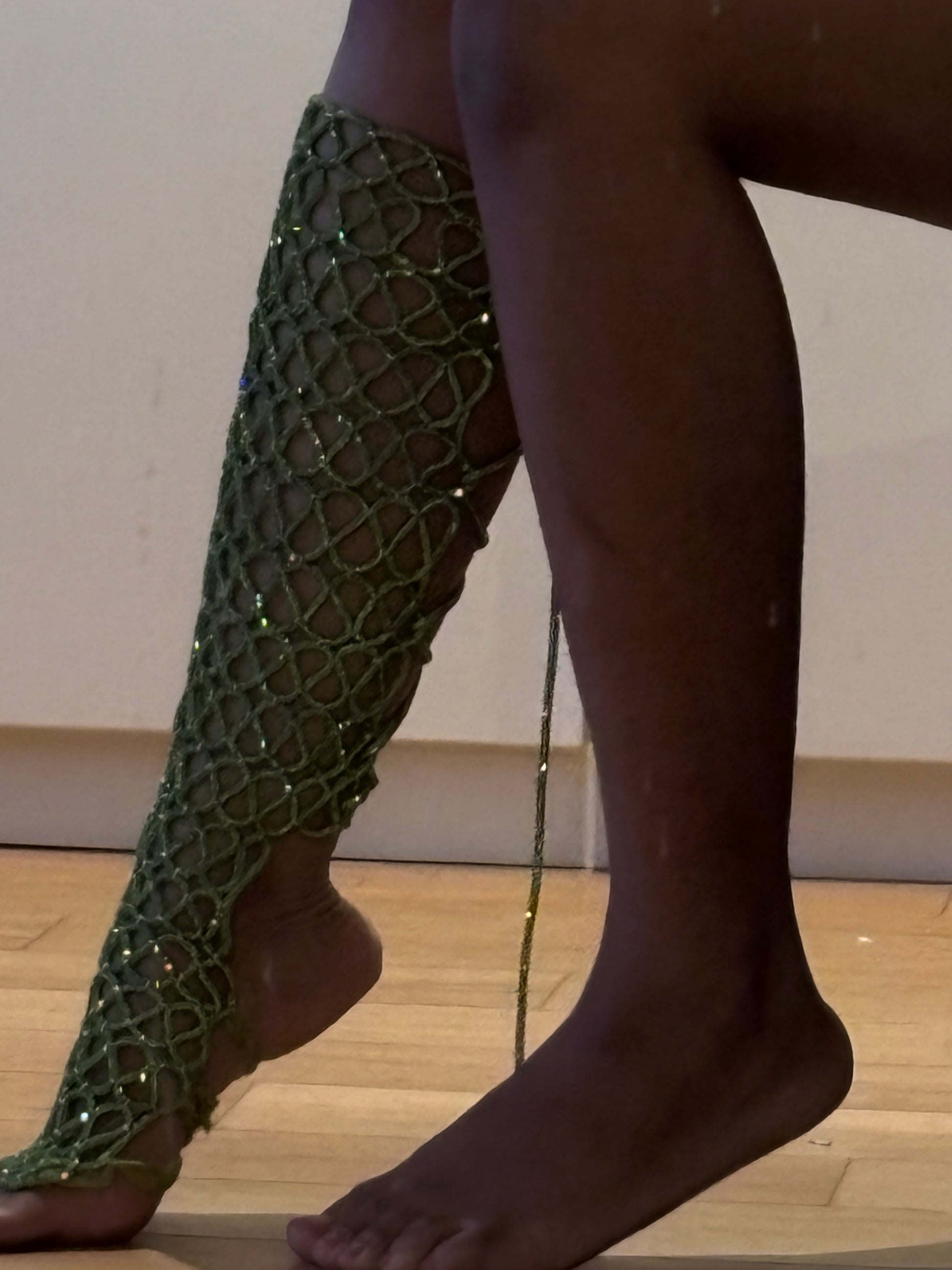 Below-the-knee crystal stockings designed to transform any heel into a statement.
