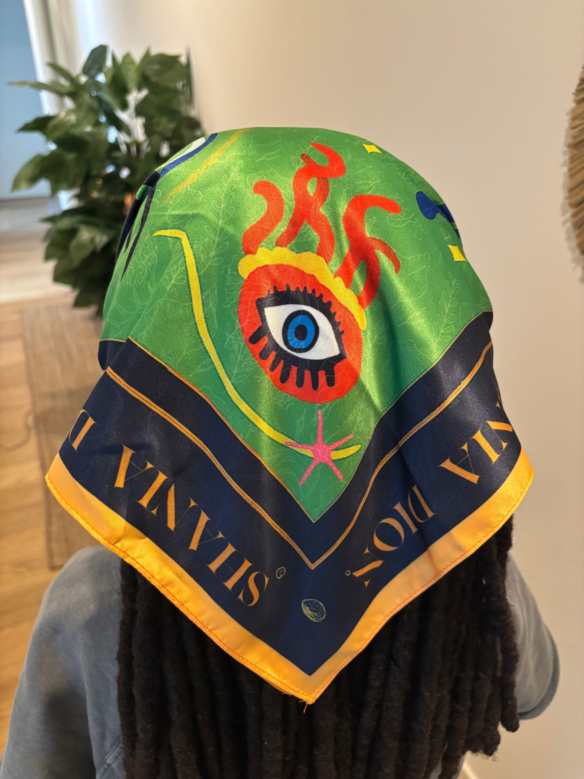 Featuring the brandâs signature jellyfish motif, the scarf captures fluid movement and bioluminescent beauty in vivid, ocean-inspired hues. Each brushstroke from the boxâs artwork has been translated into flowing patterns that wrap gracefully around the fabric, blending artistry with elegance. Lightweight yet statement-making, the scarf is versatile enough to be styled around the hair, neck, or even tied onto a bag, embodying the spirit of oceanic luxury and timeless craftsmanship.